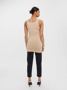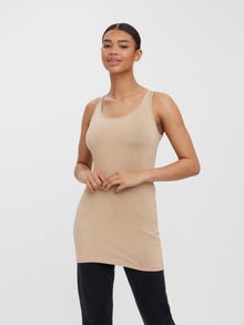Basics are inevitable to find in almost every wardrobe out there. Our basic tops help bind an outfit together and this top makes no exception. Wear it with a shacket on top, a pair of relaxed mom-jeans, and chunky boots and you get a relaxed and cool everyday look. - Product Type : Top - Neck : U-Neck - Sleeve : Sleeveless - Length/Size : Extra long - Fit : Regular Fit
