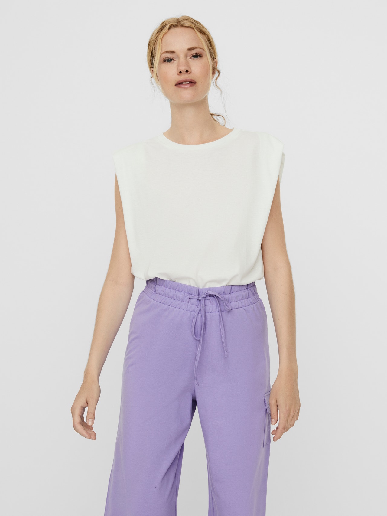 LDS. S/L T-SHIRT WITH SHOULDER PAD DETAIL