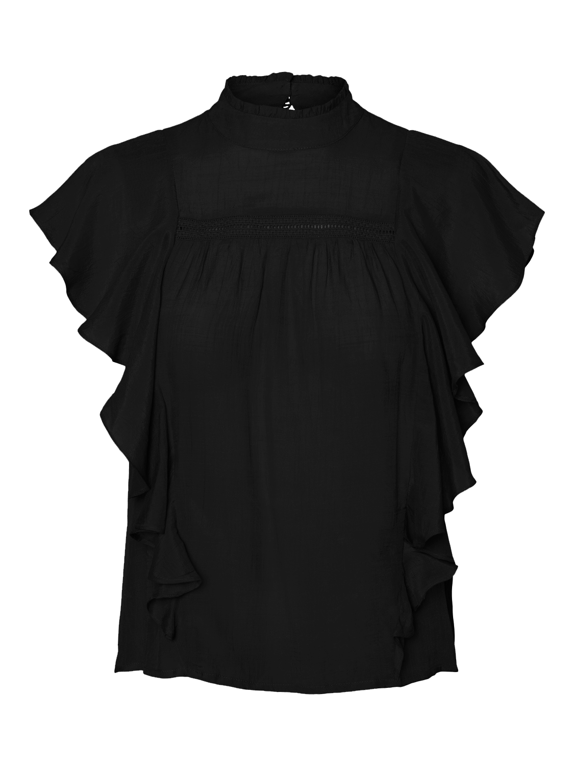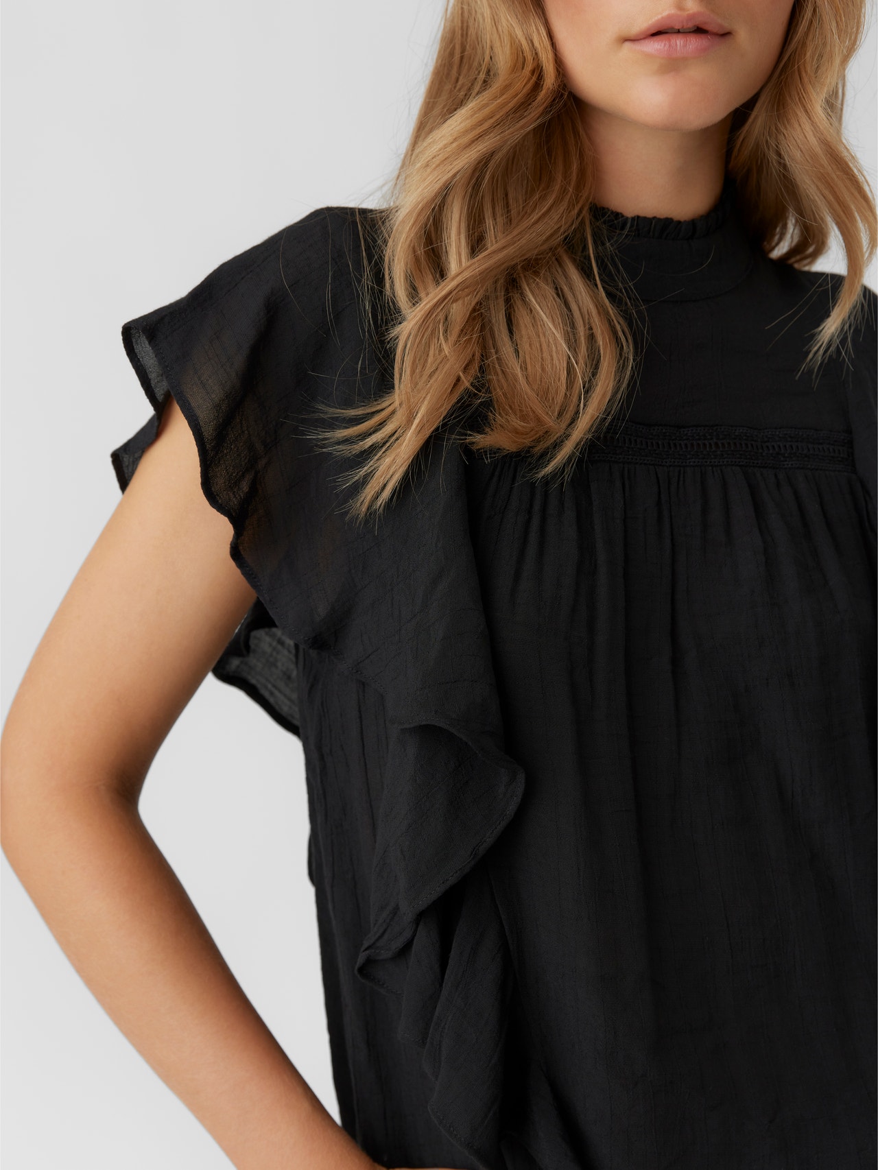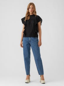 Cute top with a keyhole closure at the back, cap sleeves, and embroidery details at the chest. Style this cute top with a pair of jeans and some heeled boots for a stylish look.