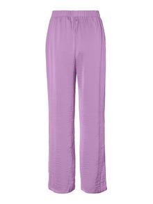 Trousers with wide legs, high waist and an elastic waistband. The trousers are made from a soft and light material. Style them with a feminine top.
