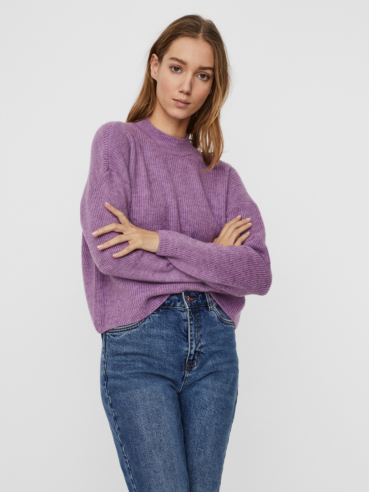 - Knitted pullover with a high neck.