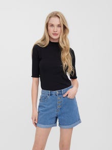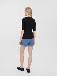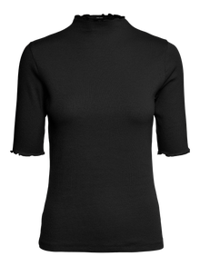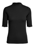Casual t-shirt with a ribbed structure, high neck, and 2/4 sleeves. Style this cute t-shirt with a maxi skirt and a pair of heels for a stunning look.