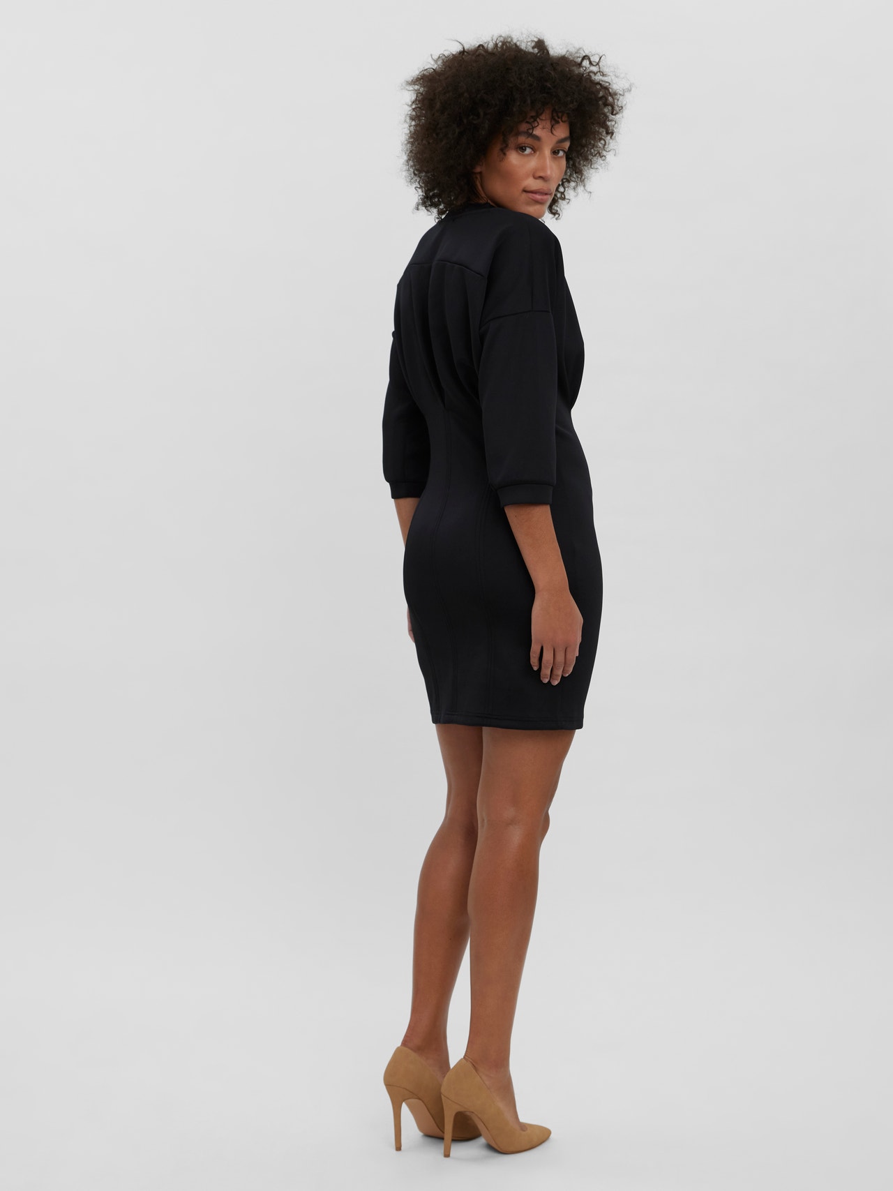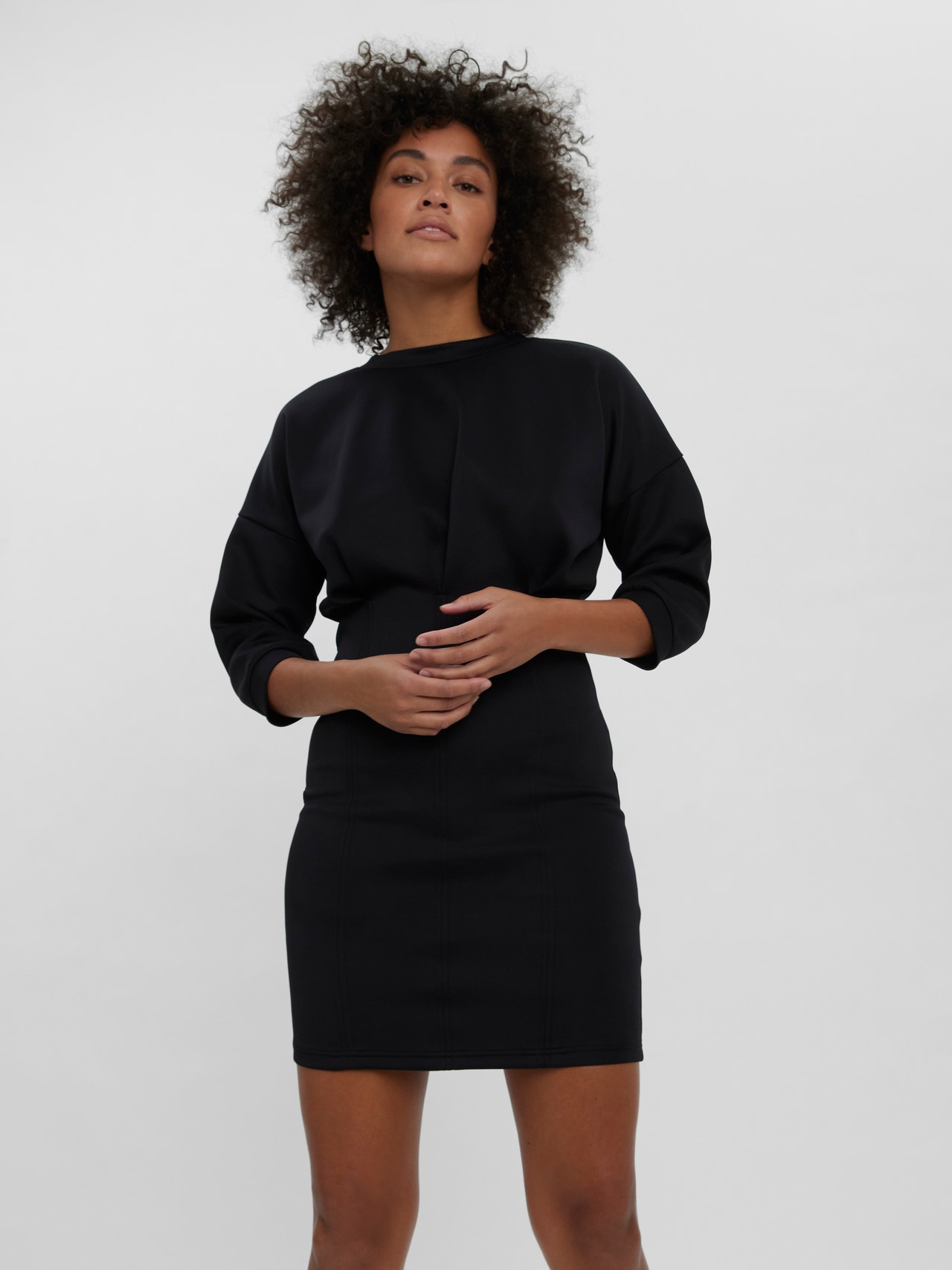 LADIES O-NECK SHORT DRESS, WITH 3/4 SLEEVES.