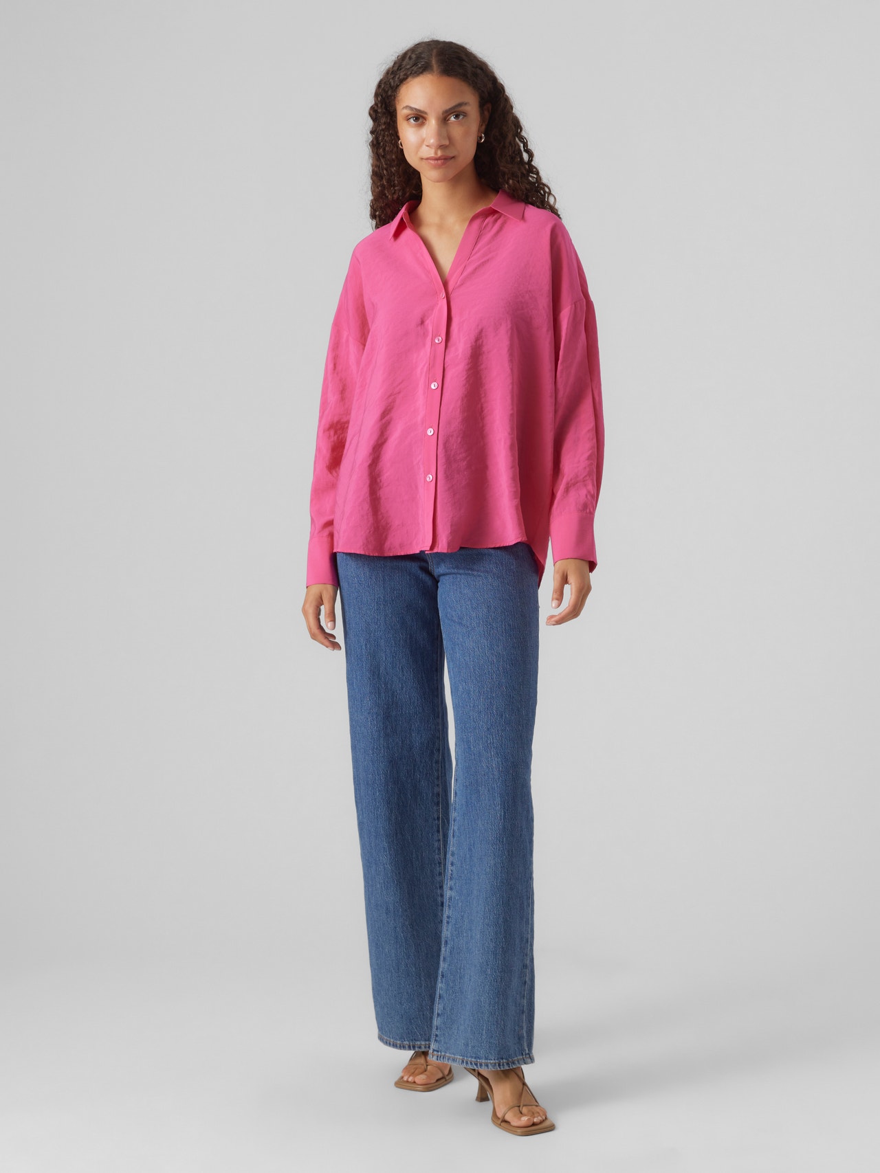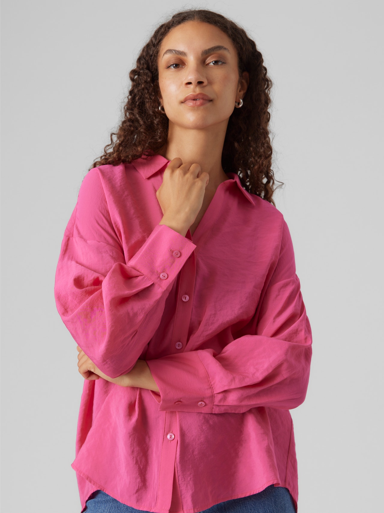 An oversized shirt is the perfect style for those days when you aim for a comfortable, yet stylish feel. Style it with jeans for your everyday wear or spice things up by adding a mini skirt and heels to it. - Product Type : Shirt - Neck : Shirt collar - Sleeve : Long sleeves - Cuffs : Buttoned cuffs - Closing : Button fastening - Extra details : Button detail - Fit : Regular Fit