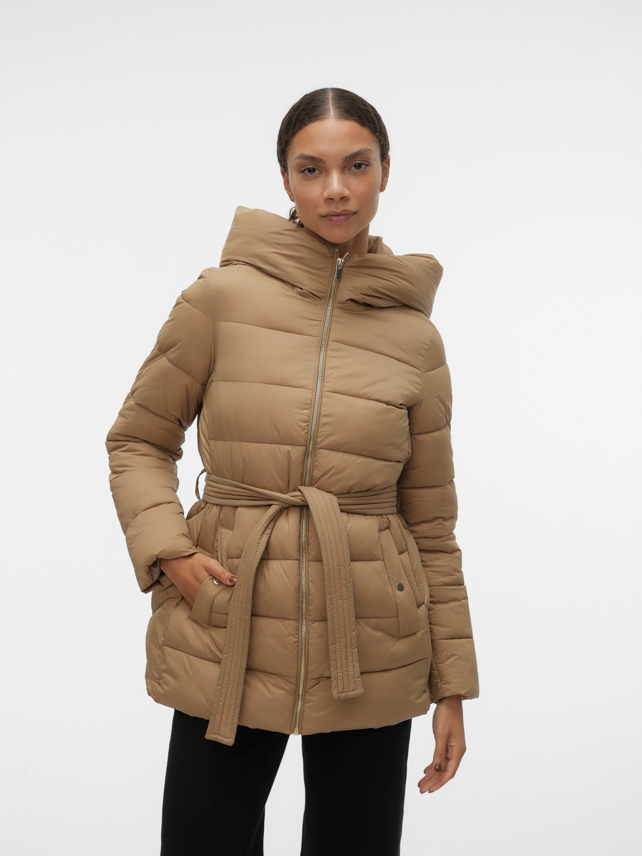 Practicality and style combined in one. When you dive into our wide selection, you will find a range of padded jackets that serve multiple purposes. The utility of the jacket makes it practical while maintaining a comfortable feel. Wear it with a beanie for a cool outerwear look, that is perfect for your everyday outings. - Product Type : Jacket - Neck : Hood - Sleeve : Long sleeves - Sleeves : Regular sleeves - Closing : Zip fastening - Pockets : Side pockets with press stud fastening - Length/Size : Above knee - Lining : Polyester lining for a comfortable feel - Padding : Polyester padding for warmth - Extra details : Belt in waist