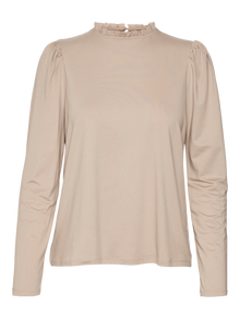 Basics are inevitable to find in almost every wardrobe out there. Our basic tops help bind an outfit together and this top makes no exception. Wear it with a shacket on top, a pair of relaxed mom-jeans, and chunky boots and you get a relaxed and cool everyday look. - Product Type : Top - Neck : High neck - Sleeve : Long sleeves - Closing : Button fastening - Fit : Regular Fit