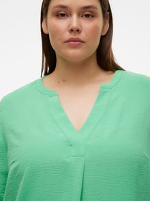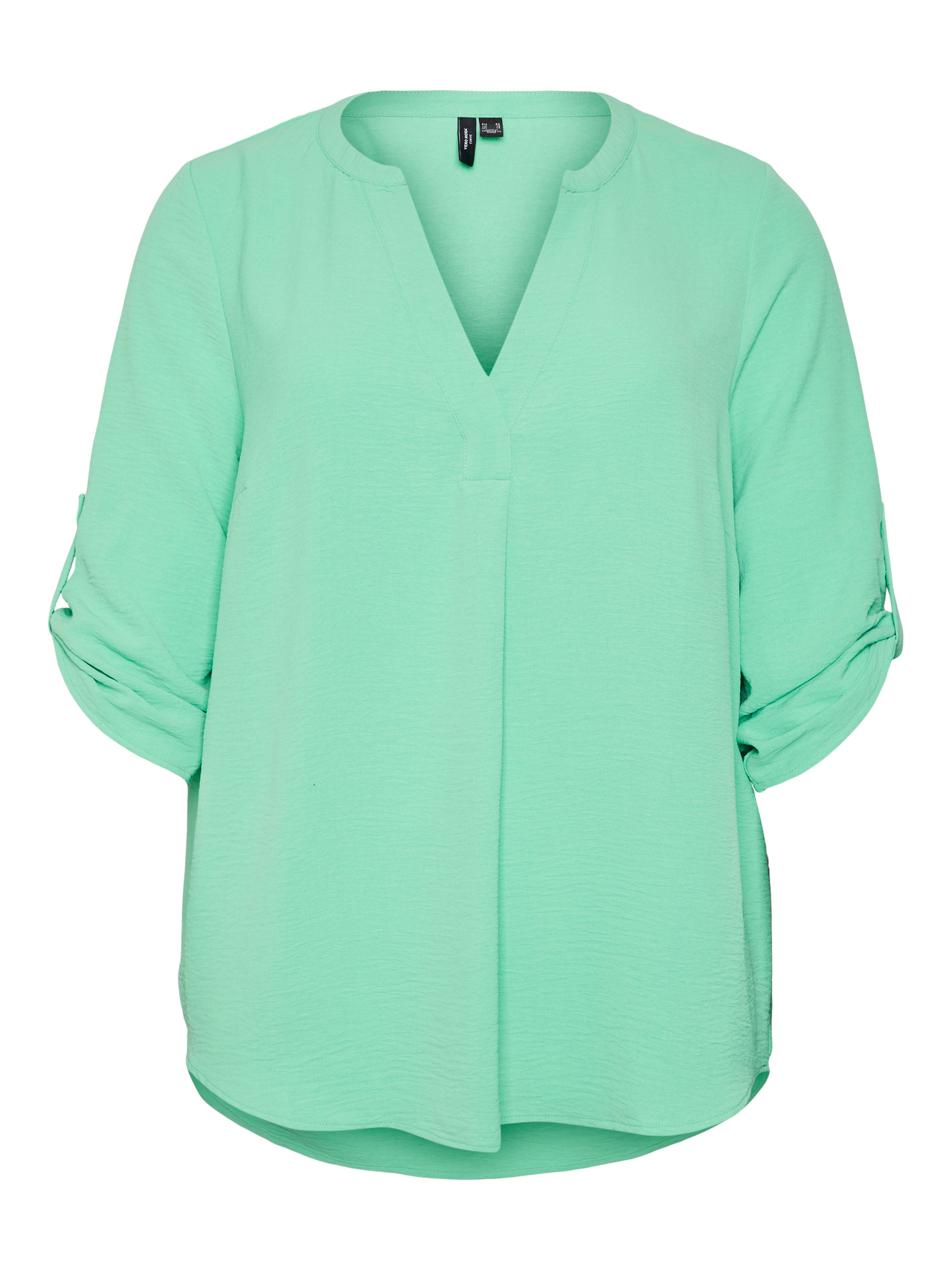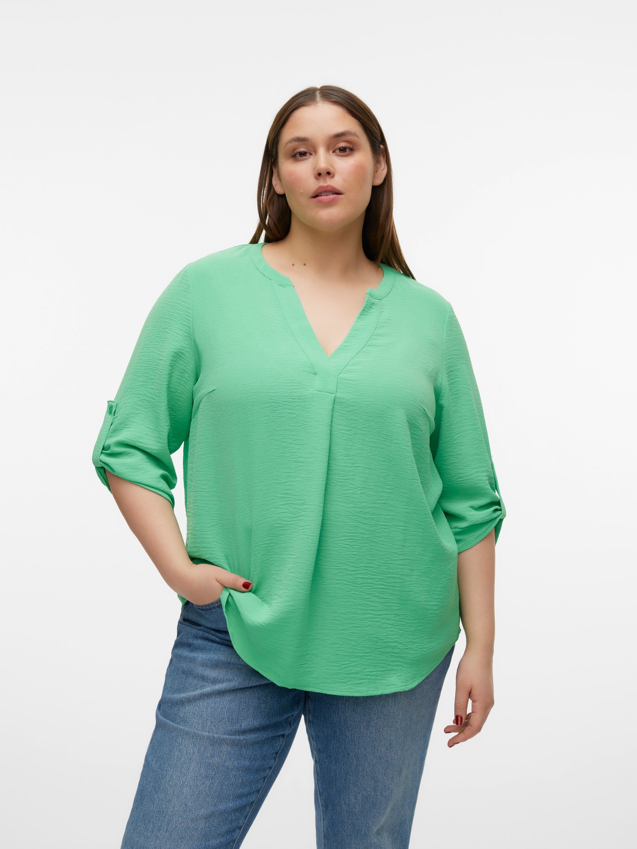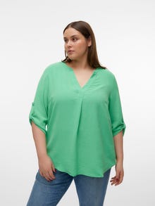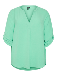 Basics are inevitable to find in almost every wardrobe out there. Our basic tops help bind an outfit together and this top makes no exception. Wear it with a shacket on top, a pair of relaxed mom-jeans, and chunky boots and you get a relaxed and cool everyday look. Curve styles are designed to fit curvy female bodies. - Product Type : Top - Neck : V-Neck - Sleeve : 3/4 sleeves - Cuffs : Fold-up cuffs - Extra details : Button detail - Fit : Regular Fit