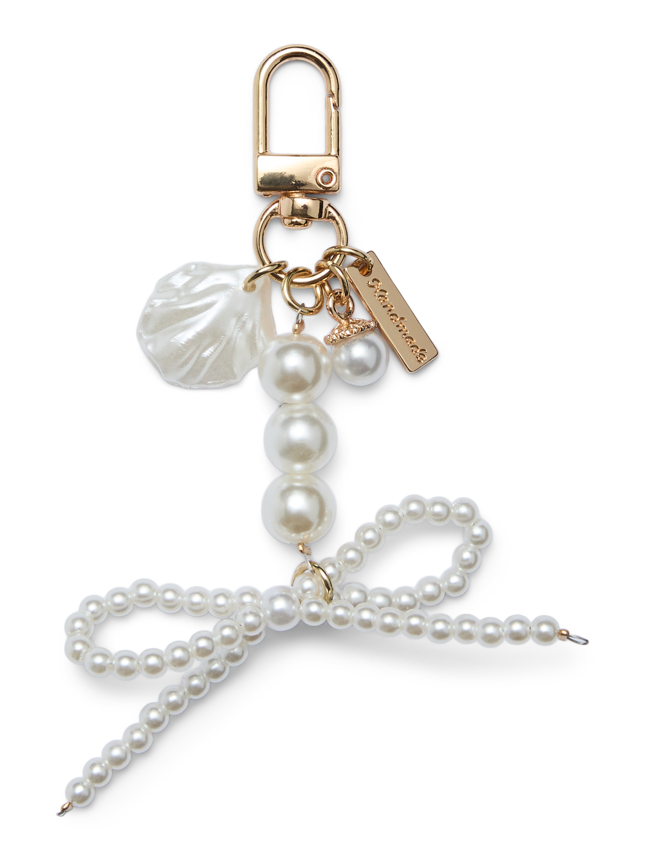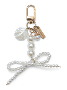 LDS KEYCHAIN W. 1 ROW LARGE FAUX PEARLS AND FAUX PEARL BOW