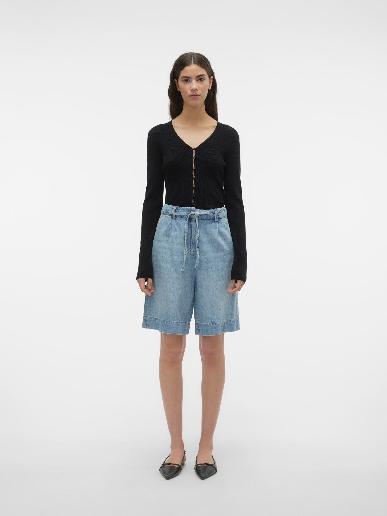 A wardrobe icon that only gets better season after season. With a pair of denim shorts you will get far. Easy to love, easy to style for example with a pair of heels and a blazer - or sneakers for an effortless everyday look. - Product Type : Shorts - Closing : Zip fly fastening, Button fastening - Pockets : Back pockets, Front pockets - Waist : Mid rise - Length/Size : Knee length - Extra details : Belt in waist - Fit : Loose Fit