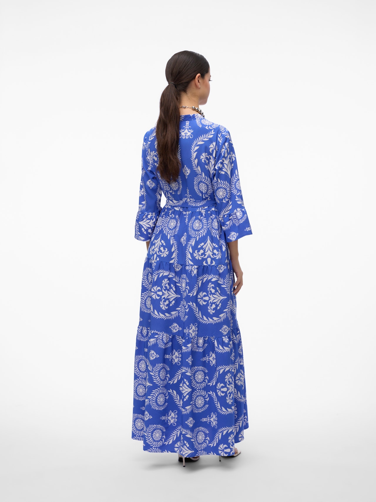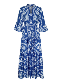 This dress is the perfect choice on days, where putting together an outfit seems impossible. Combining comfortability and style makes this dress a perfect everyday go-to. Style it up or down depending on your taste. - Product Type : Dress - Neck : V-Neck - Sleeve : 3/4 sleeves - Sleeves : Wide sleeves - Length/Size : Maxi length - Extra details : Belt included - Print : Print repeated across the entire surface of the product - Fit : Regular Fit