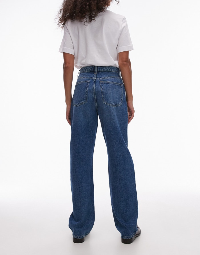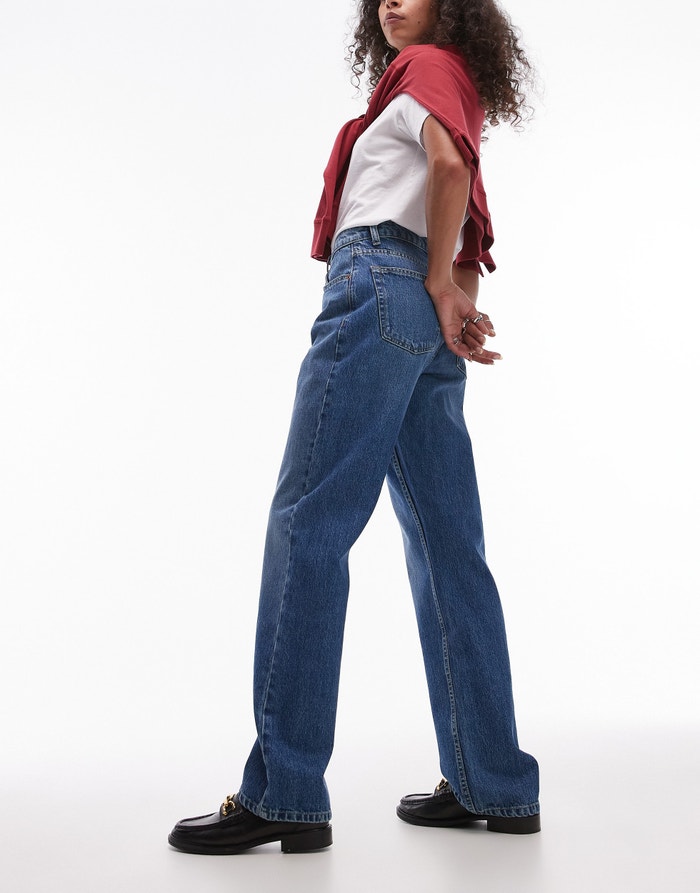 Topshop Kort high rise straight jean in mid blue - MBLUE