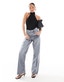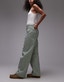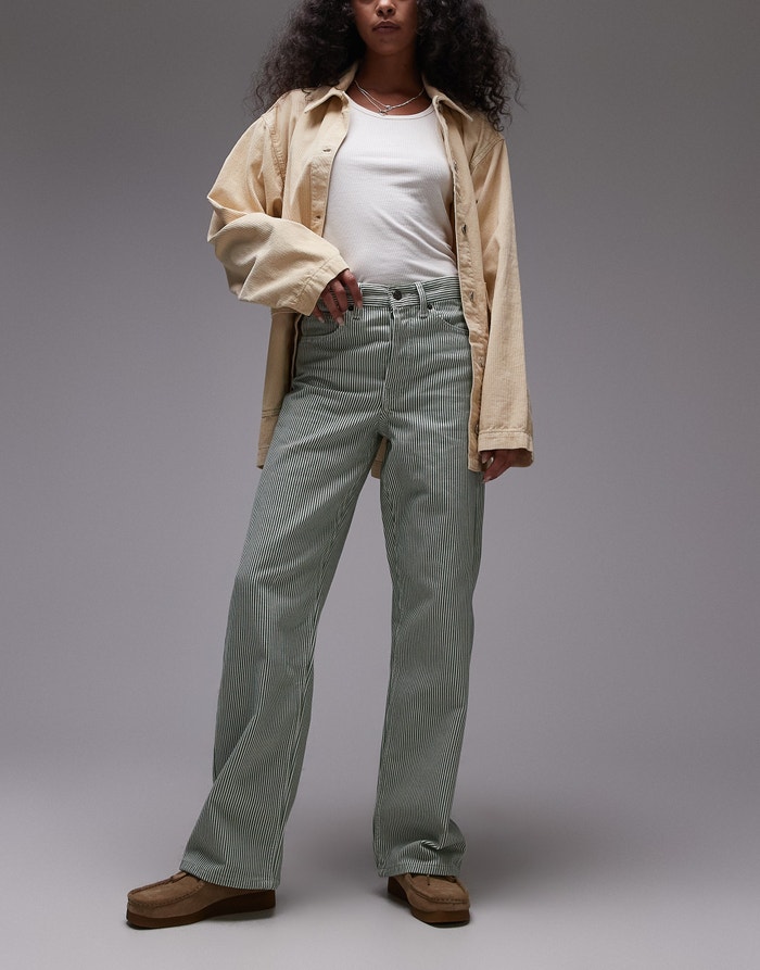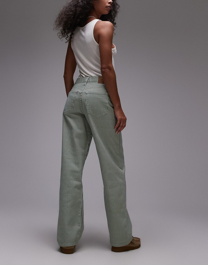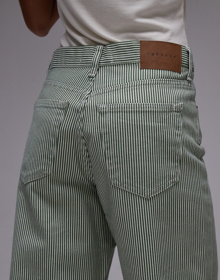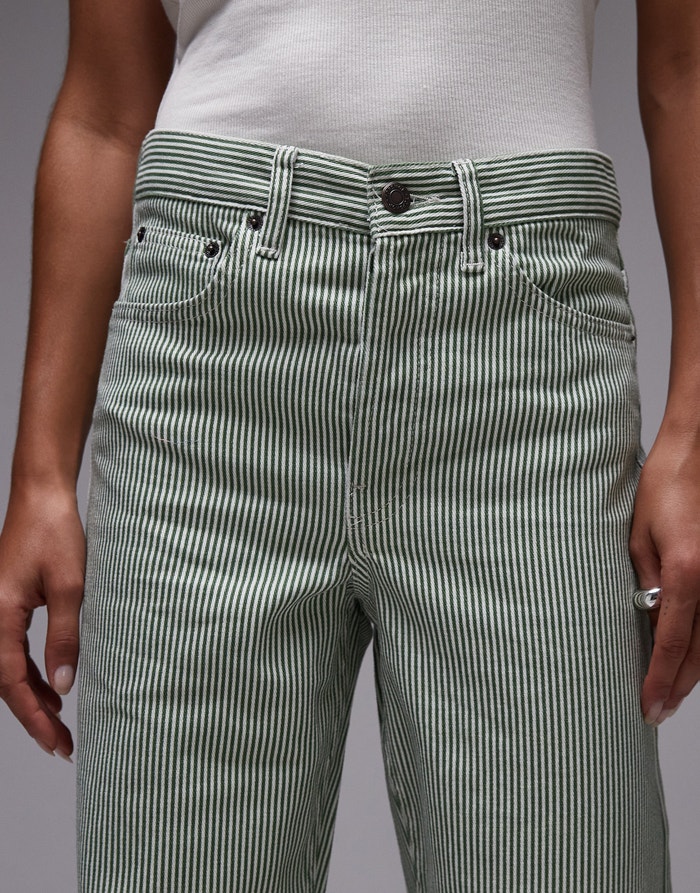 Topshop mid rise loose fit straight jean in green stripe - MGREEN
