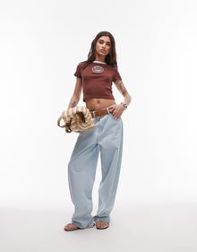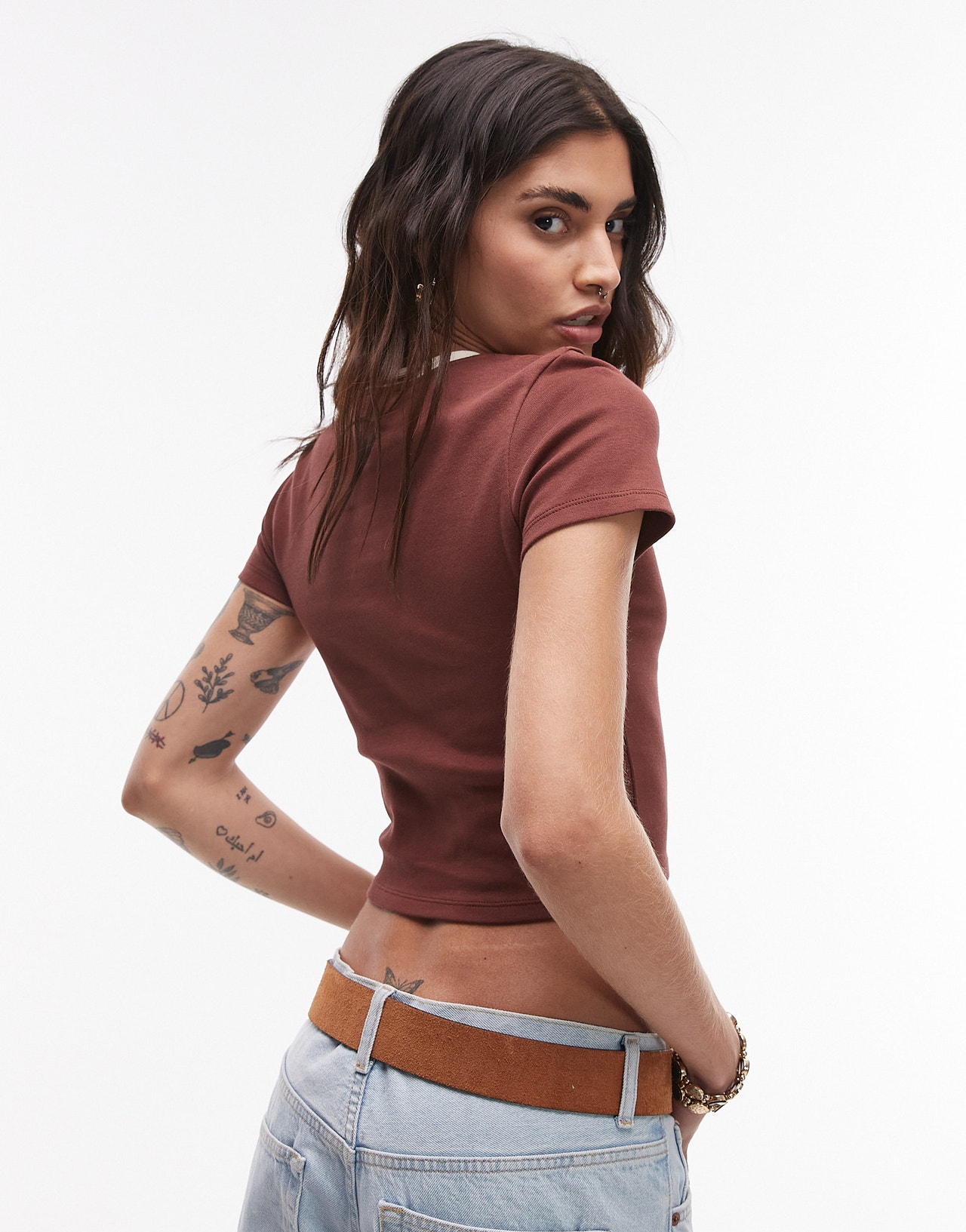 Topshop embroidered reggio calabria ringer baby tee in chocolate brown - BROWN
