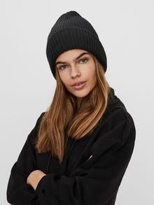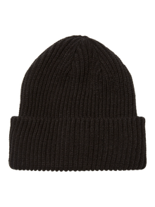 - Knitted beanie. - Turn-up brim. Knitted beanie with turn-up brim. The beanie is made from a soft and stretchy material. Style it with a puffer jacket and chunky boots.