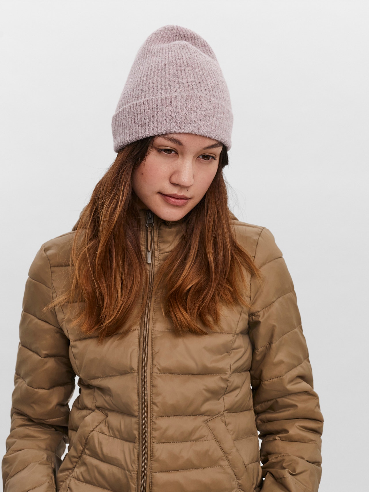 Beanie with a turn-up brim made from a super soft and recycled material. Style the beanie with a puffer jacket for when it is cold outside.