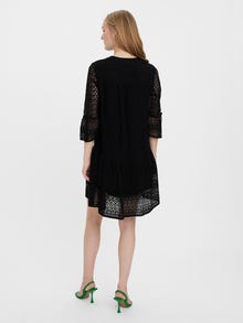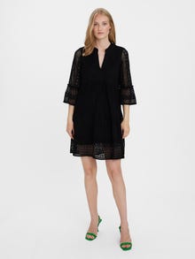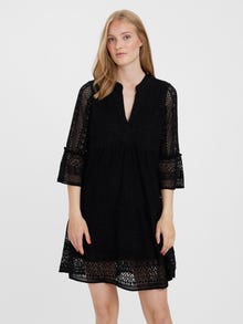 This dress is the perfect choice on days, where putting together an outfit seems impossible. Combining comfortability and style makes this dress a perfect everyday go-to. Style it up or down depending on your taste. - Product Type : Tunic - Neck : V-Neck - Sleeve : 3/4 sleeves - Length/Size : Short - Lining : Polyester lining for a non-transparent look - Extra details : Lace detail - Fit : Regular Fit