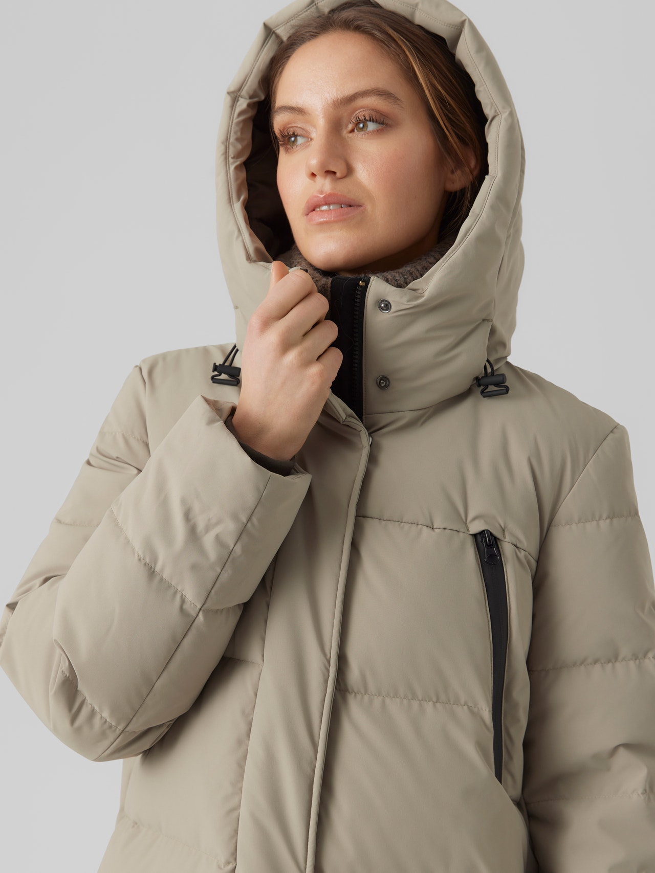 On the lookout for the perfect winter jacket? We offer different options, with our wide range. This timeless jacket is designed to keep you in-style throughout the seasons to come. Styling-tip! Add a scarf and classic boots for a stylish and comfortable outerwear look. - Product Type : Coat - Neck : Hood with string regulation - Cuffs : Storm cuffs to prevent wind from entering - Pockets : Chest pockets, Side pockets - Lining : Polyester lining for a comfortable feel - Padding : Responsibly-sourced down and feather padding for a light feel and warmth - Extra details : Quilted detail