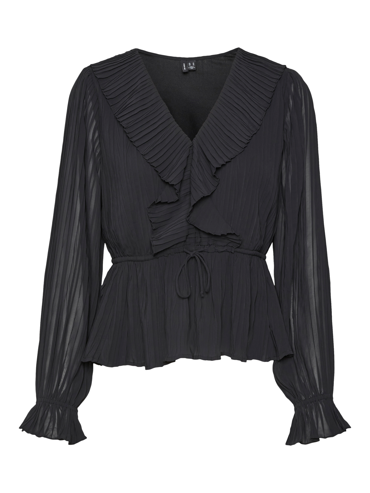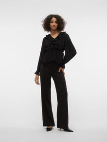Looking for your new everyday favourite top? We got an idea. This top will easily become your new go-to on days where you are not in the mood for something wild, but still want to look on-trend. Add some jewellery for that extra bit of sparkle or keep it simple with a light jacket. - Product Type : Top - Neck : V-Neck - Sleeve : Long sleeves - Cuffs : Elasticated cuffs - Lining : Polyester lining for a non-transparent look - Extra details : Frills - Fit : Regular Fit