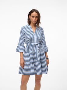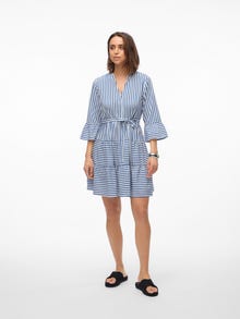 This dress is the perfect choice on days, where putting together an outfit seems impossible. Combining comfortability and style makes this dress a perfect everyday go-to. Style it up or down depending on your taste. - Product Type : Dress - Neck : V-Neck - Sleeve : Long sleeves - Sleeves : Wide sleeves - Length/Size : Short - Extra details : Belt included - Print : Print repeated across the entire surface of the product - Fit : Regular Fit