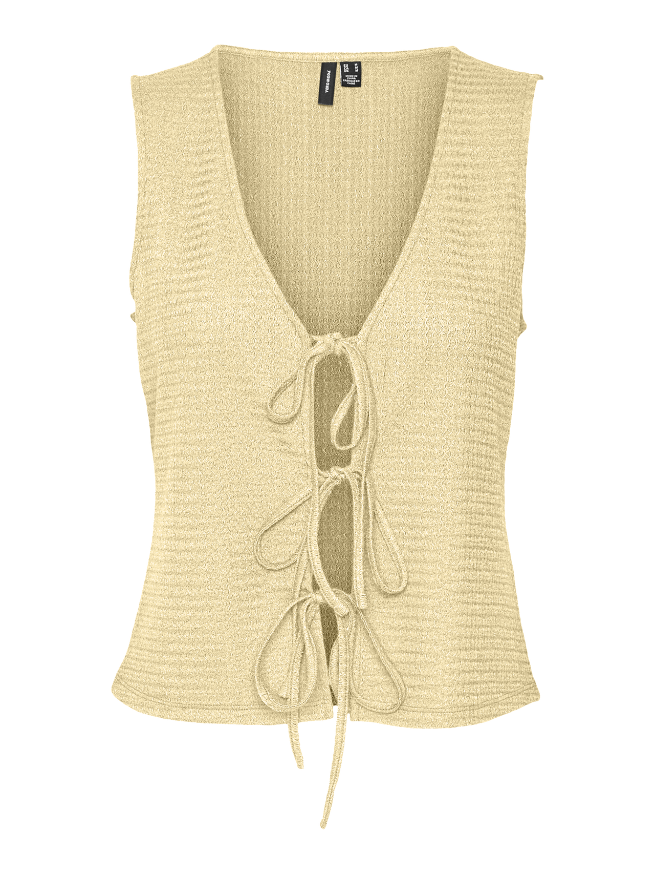 Sleeveless tops are great for a festive look, a sunny holiday, and many other occasions. This stunning top can easily elevate any look with its nice details and versatility. Want a more sophisticated look? Style it with high-waisted trousers and heeled sandals. - Product Type : Top - Neck : V-Neck - Sleeve : Sleeveless - Closing : String fastening - Length/Size : Short - Fit : Regular Fit