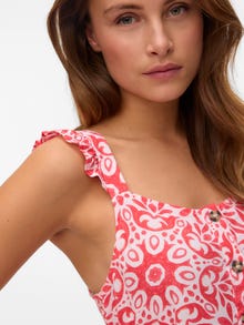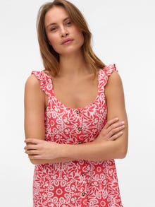 A shirt dress is both versatile and stylish. This style is a wardrobe must-have. Wear it as it is or style it with a pair of jeans. Add a belt at the waist to highlight your figure. With endless styling-possibilities, this shirt dress is perfect for days, where you do not know what to wear. - Product Type : Dress - Neck : Square neck - Sleeve : Sleeveless - Closing : Button fastening - Length/Size : Calf length - Extra details : Frills - Print : Print repeated across the entire surface of the product - Fit : Regular Fit