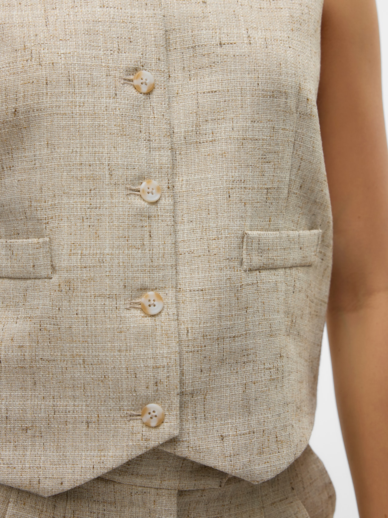 Add a finishing touch to your tailored look with a waistcoat. Style it for a night out with a pair of tailored trousers and your go-to heels. Or, go for a more casual look and add a t-shirt and a pair of loafers. Explore your own personal style with a tailored waistcoat. - Product Type : Waistcoat - Closing : Button fastening - Pockets : Non-functional front pockets - Lifestyle : Traditional