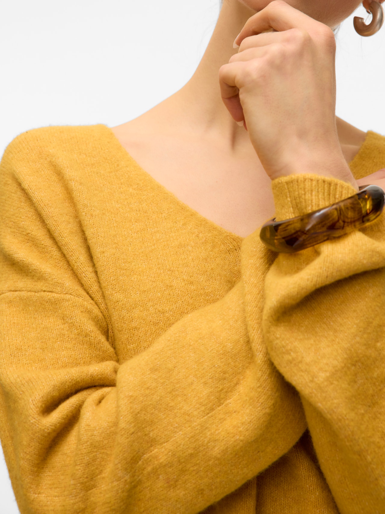 No wardrobe is ever complete without your favourite jumper, and this might be your new go-to top layer. The perfect way to stay warm and stylish without compromising on comfortability. Pure perfection!. - Product Type : Knitted pullover - Neck : V-Neck - Sleeve : Long sleeves - Sleeves : Dropped shoulders - Cuffs : Ribbed cuffs - Fit : Regular Fit