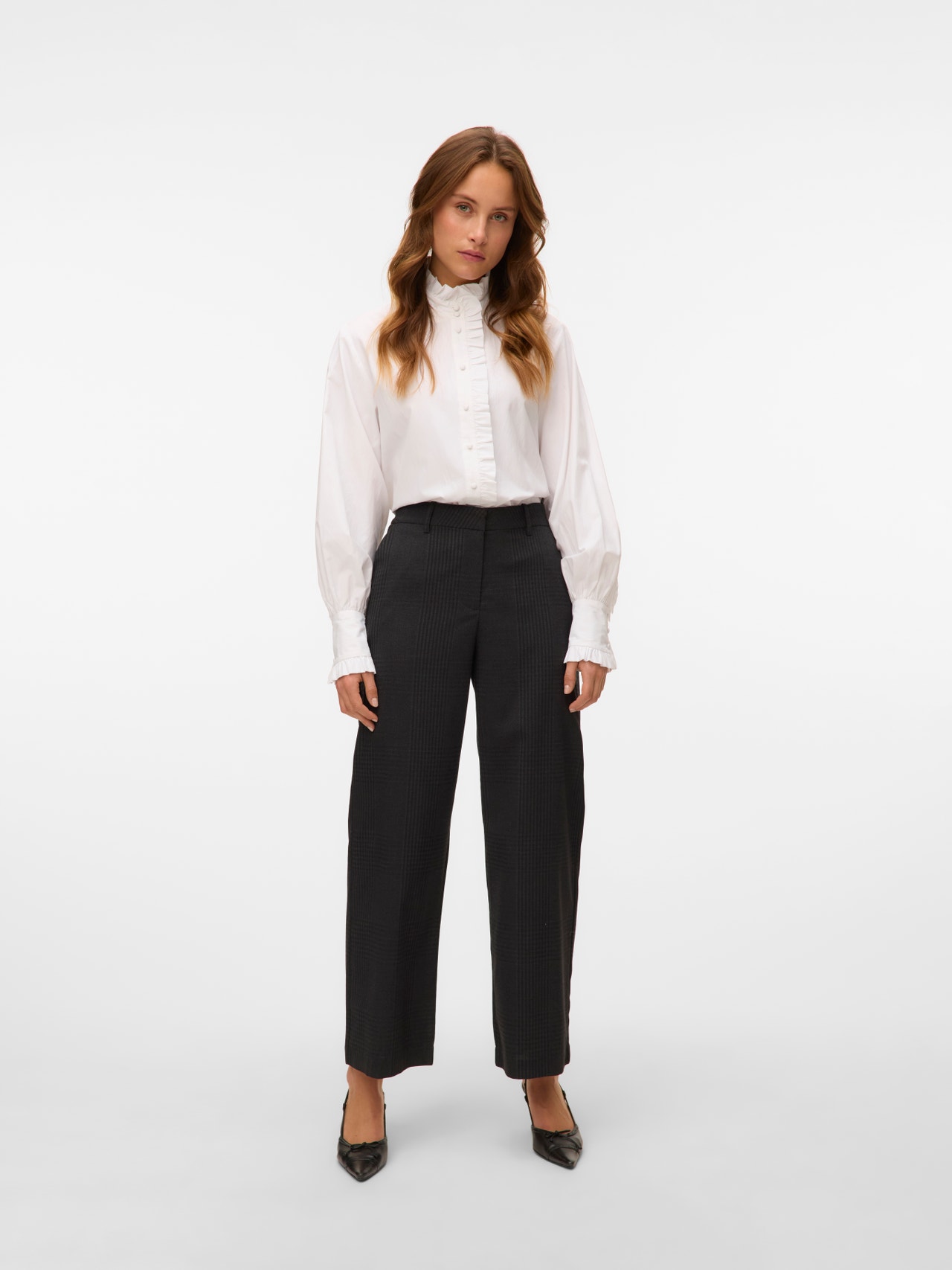 Whether you are going for an office look or dressing them down with sneakers and a simple tee, tailored trousers are your best friend. Versatile to style and a very flattering fit, what else do you need?. - Product Type : Trousers - Closing : Hook button and zip fly fastening - Pockets : Front pockets - Waist : Low waist - Extra details : Belt loops - Fit : Wide Leg Fit