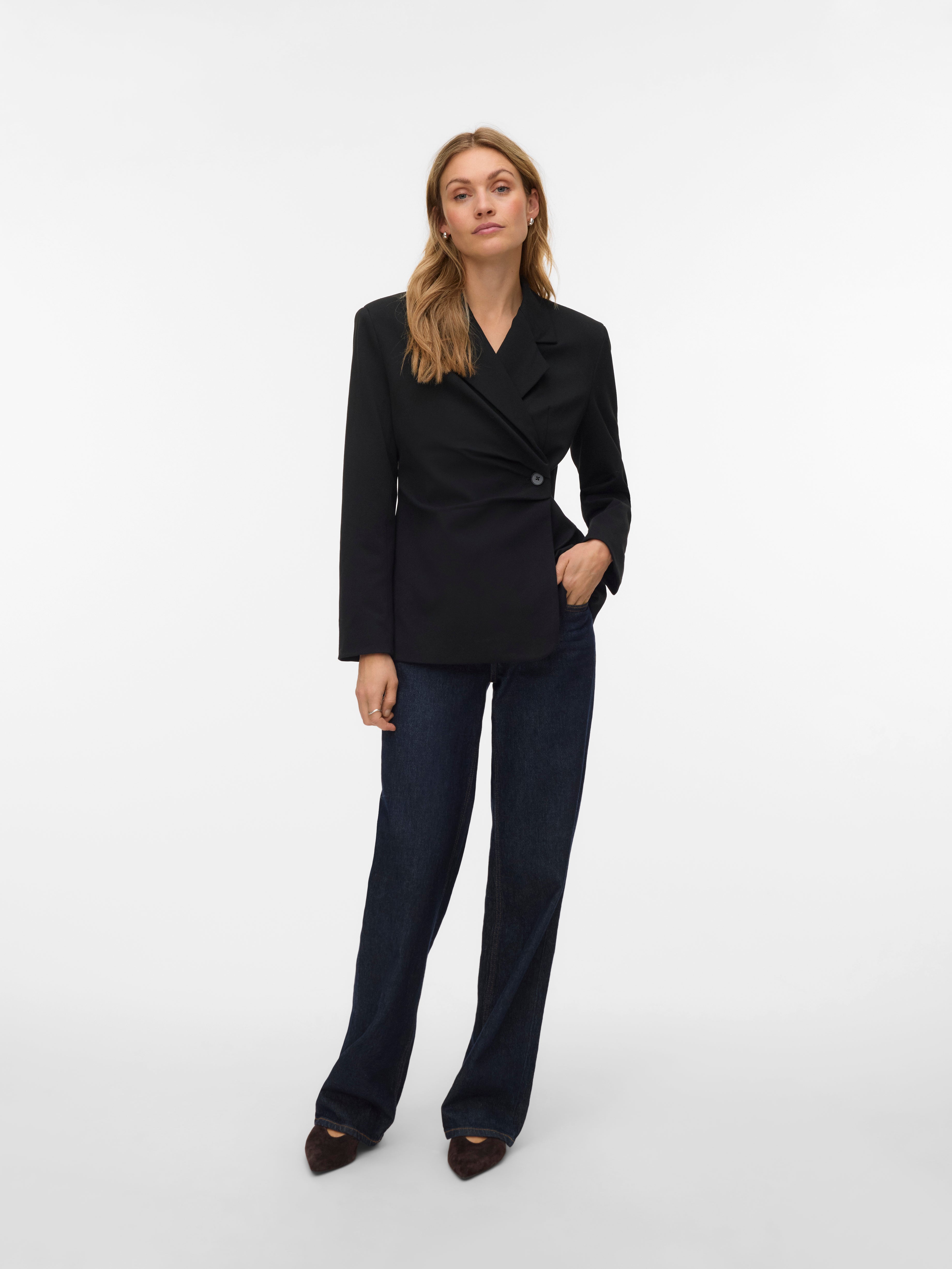 In doubt about what to wear? Throw on a blazer. This blazer is your stylish go-to. No matter if you are wearing it over a top of a simple T-shirt - the blazer always adds its own sophistication and class. Style it with wide jeans and heeled shoes for an elevated everyday look.