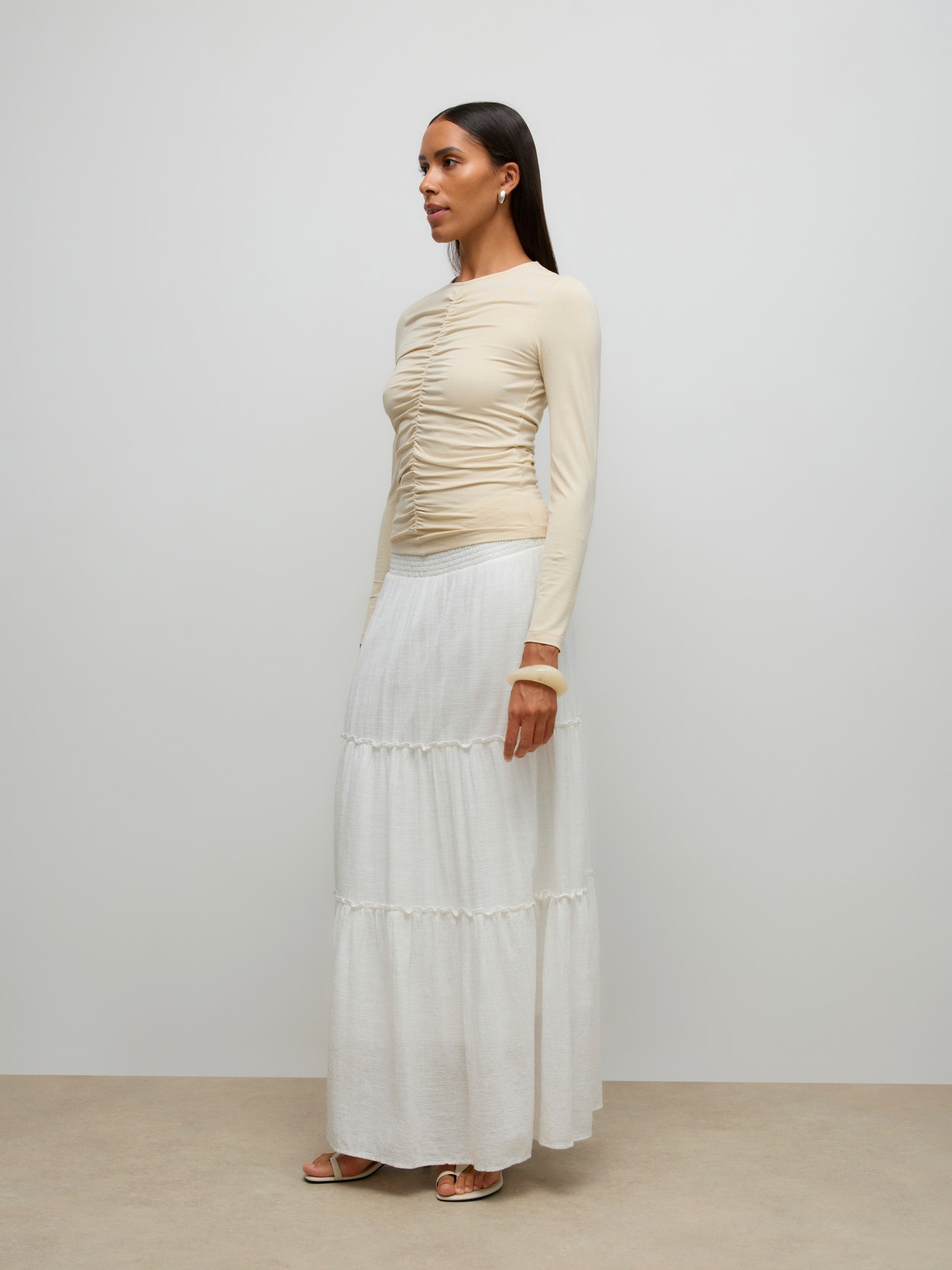 When in doubt, wear a T-shirt! You can never go wrong with a T-shirt - a perfect choice for a cool and timeless look. Wear this T-shirt with nice boyfriend jeans and add a pair of chunky sneakers for an urban city look.