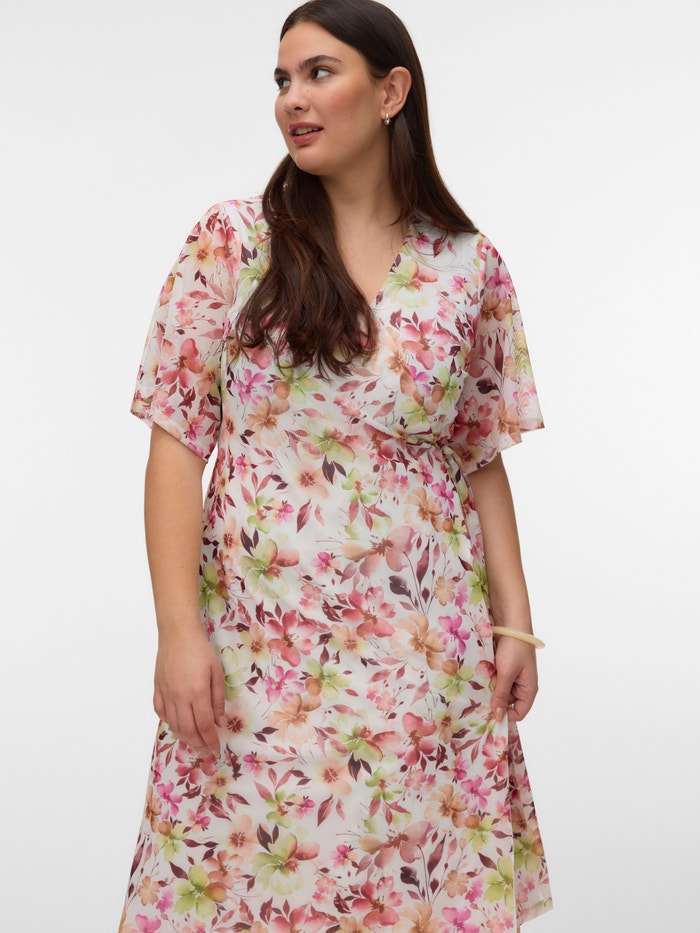 Wrap yourself in cute wrap dresses. This wrap dress is a great way to show your complimentary figure and is easy to adjust and style to your liking. The wrap-effect allows you to tie it as loose or tight as you want. Style it with cute, open sandals for a feminine summer look.
