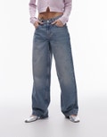 Topshop Cinch low rise relaxed jean in vintage bleach - LBLUE