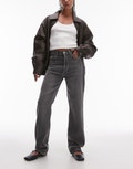 Topshop Kort high rise straight jean in grey - GREY