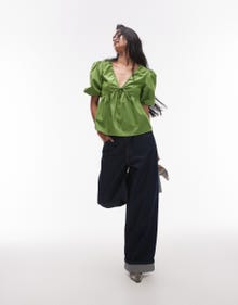 Topshop poplin puff sleeve top in green - MGREEN