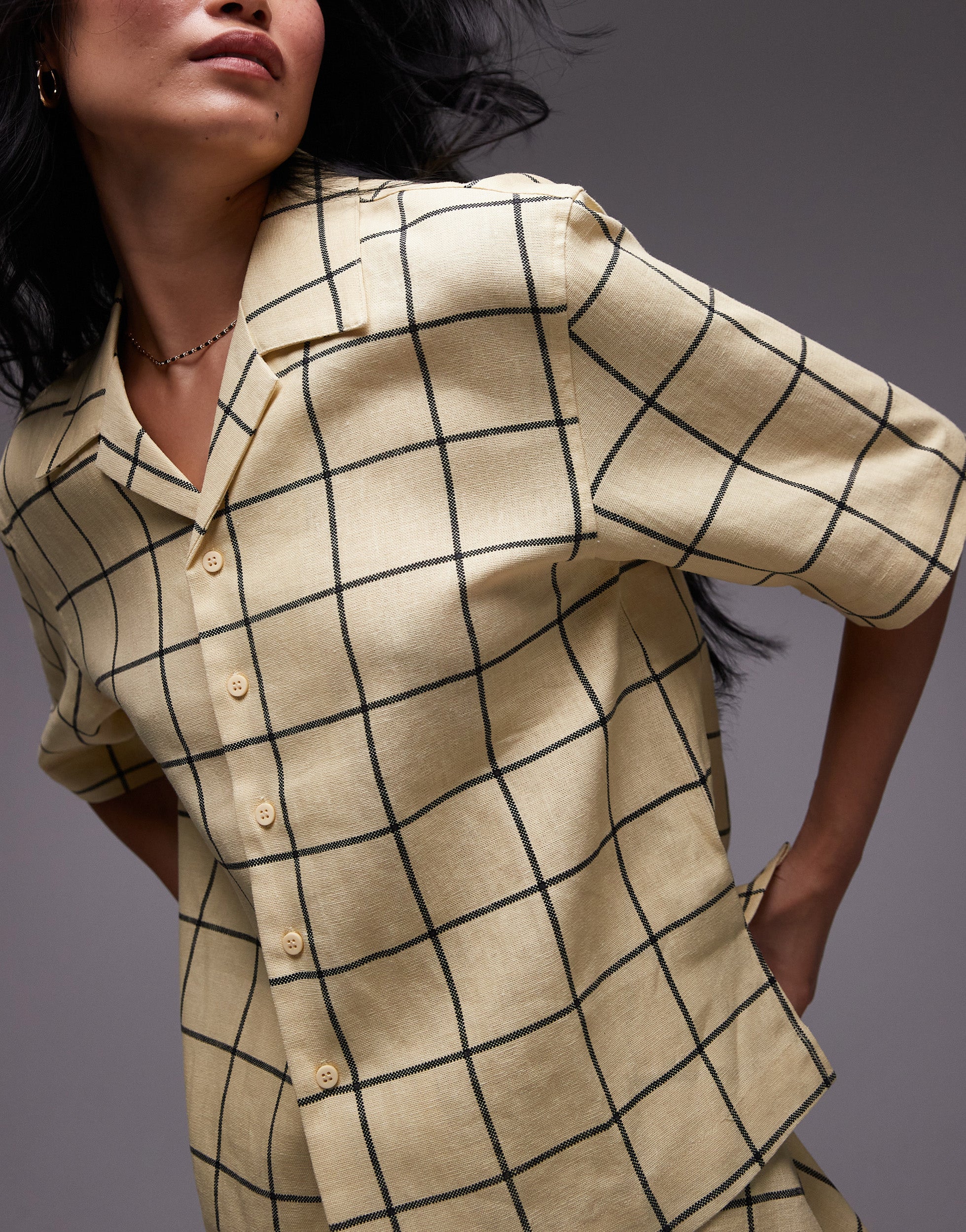 Topshop resort shirt in yellow windowpane check - YELLOW