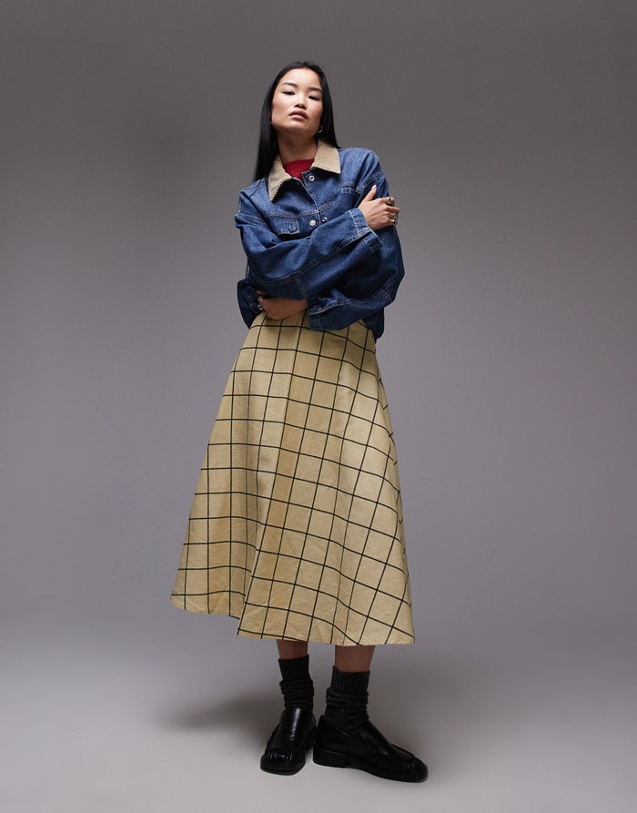 Topshop full skirt in yellow windowpane check - YELLOW