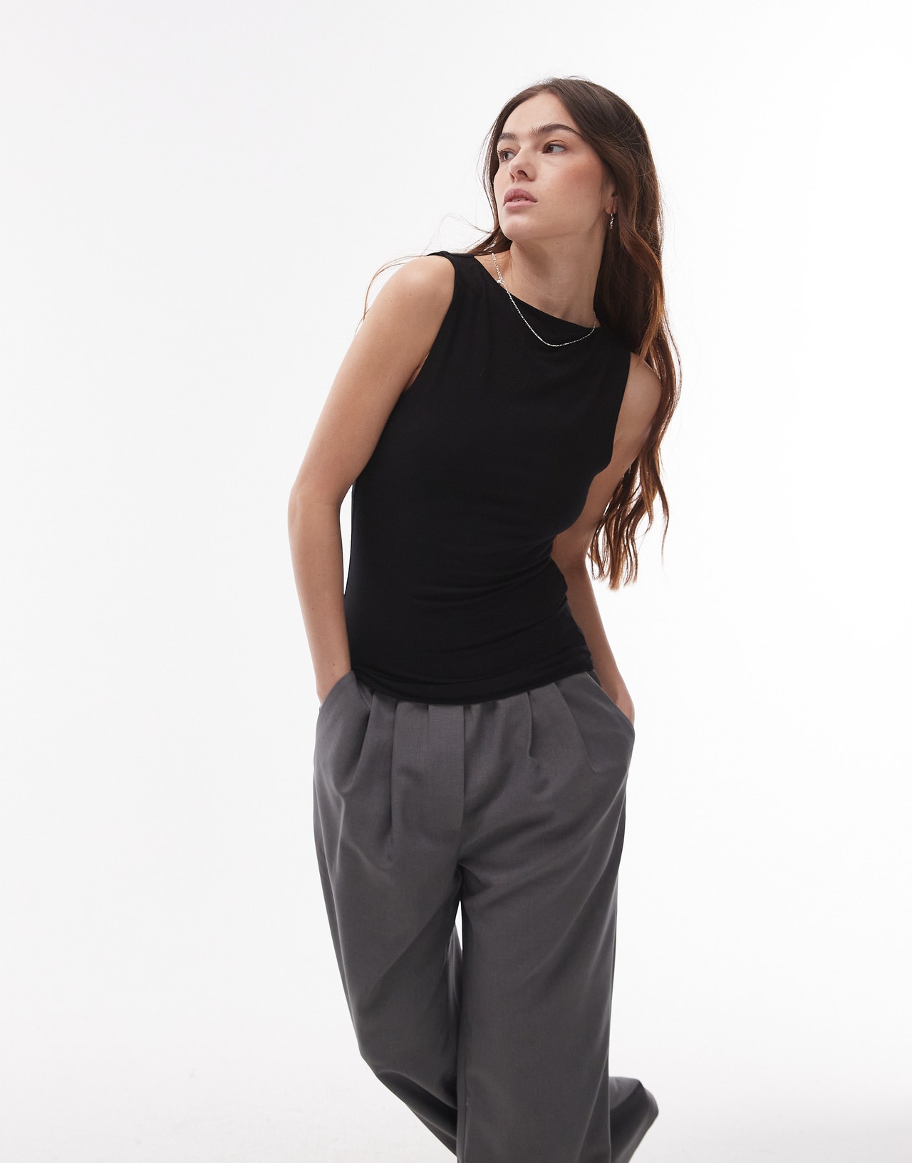 Topshop premium slash neck tank in black - BLACK