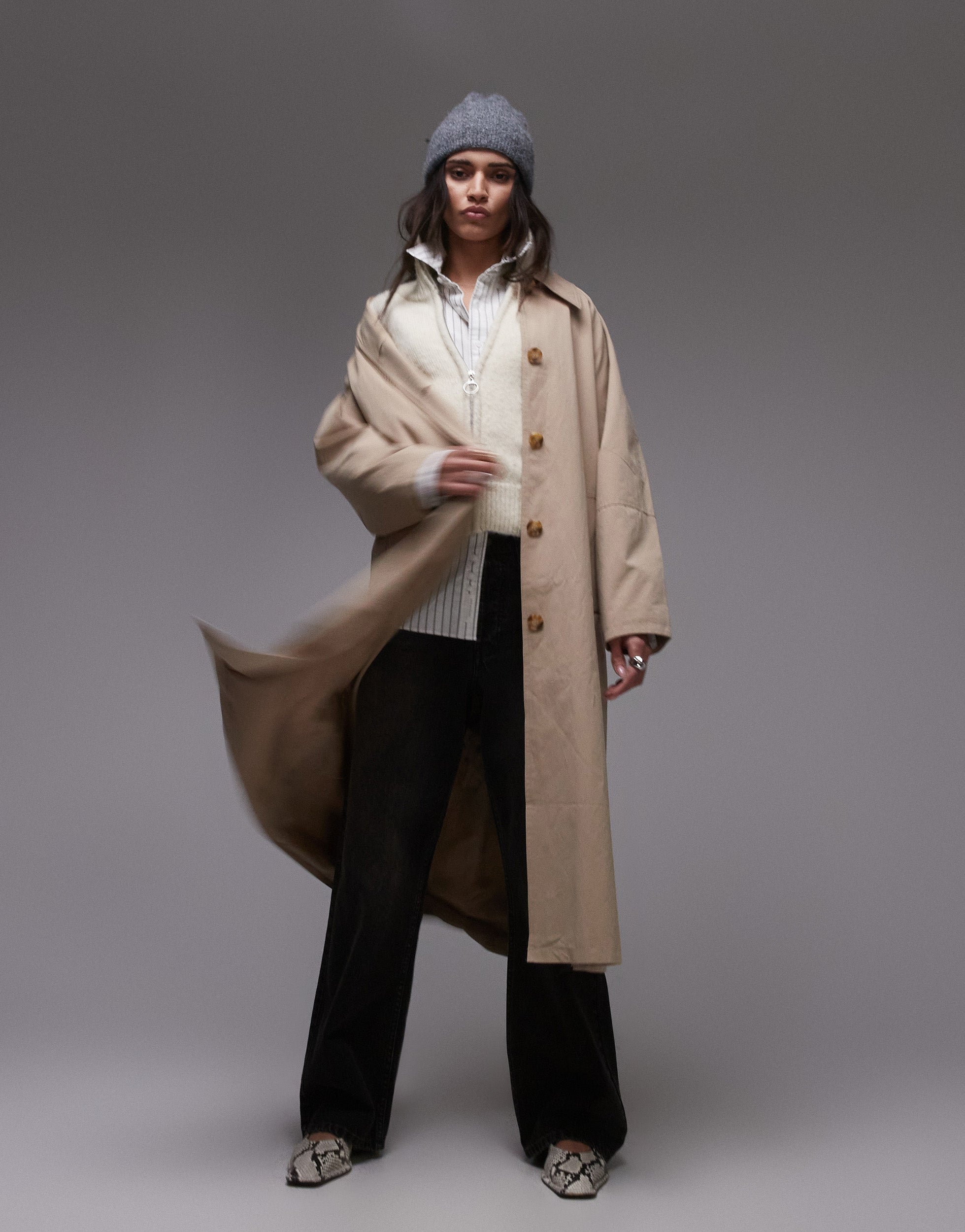Topshop 90s trench coat in stone - STONE