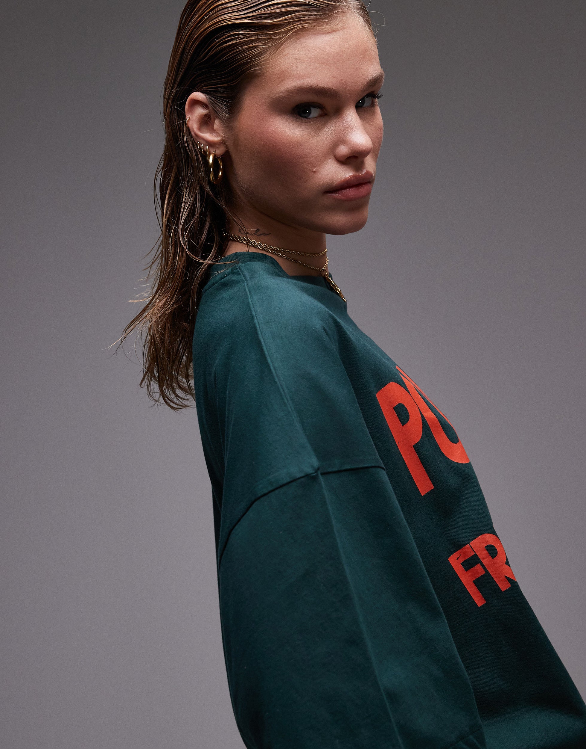 Topshop graphic Pomodori oversized tee in green - DGREEN