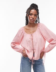 Topshop ruched neck tie front top in pink