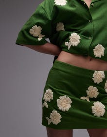 Topshop co-ord pelmet skirt in green with raffia flowers - MGREEN