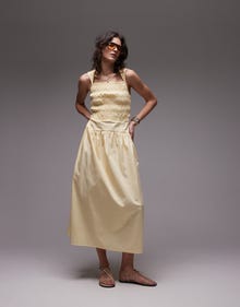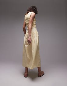 Topshop shirred bust dropped waist midi poplin dress in buttermilk - YELLOW
