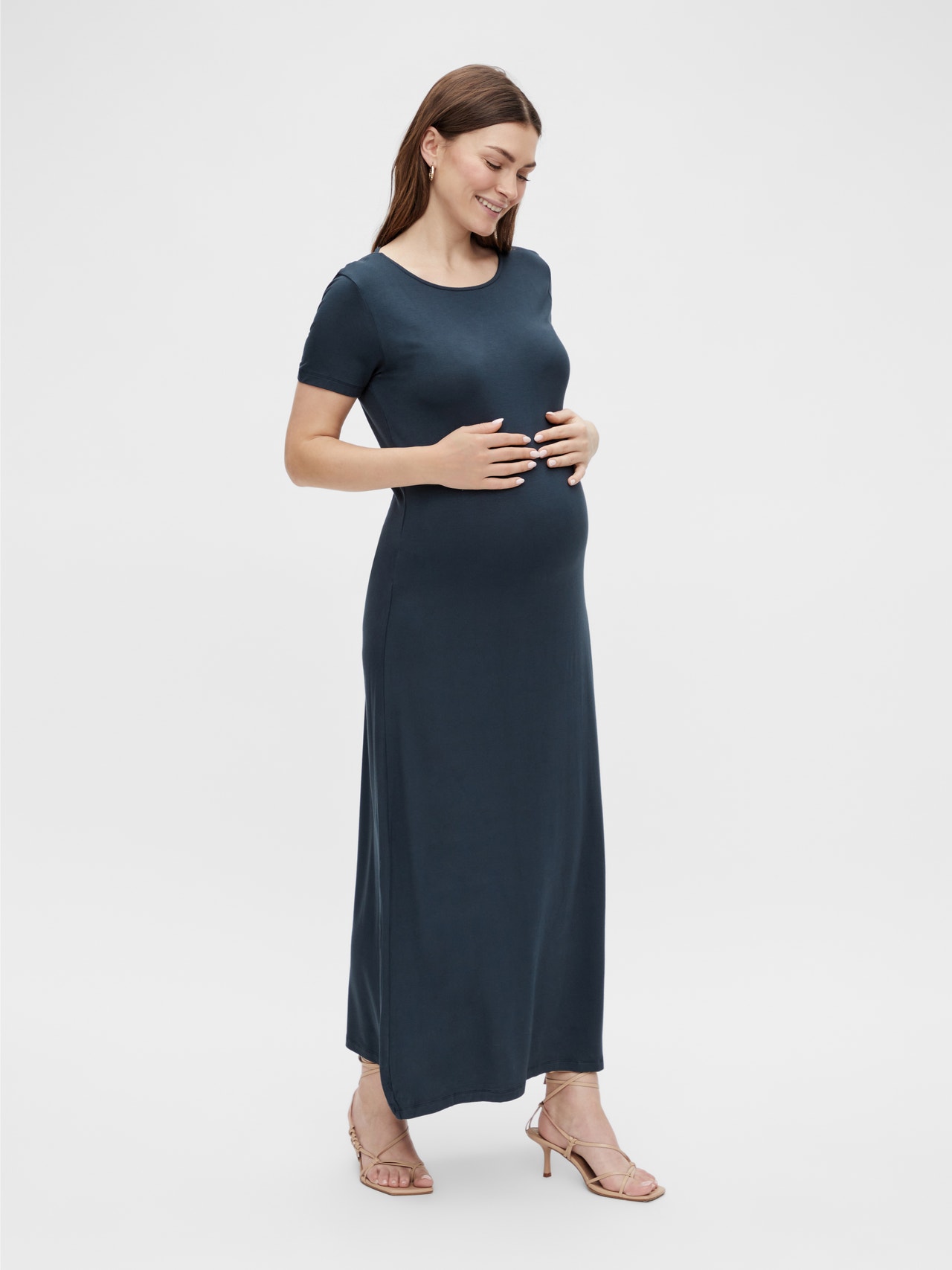 LADIES MATERNITY DRESS MAXI LENGTH SHORT SLEEVES DETAIL AT BACK Composition: 95% Viscose LENZINGECOVERO, 5% Elastane