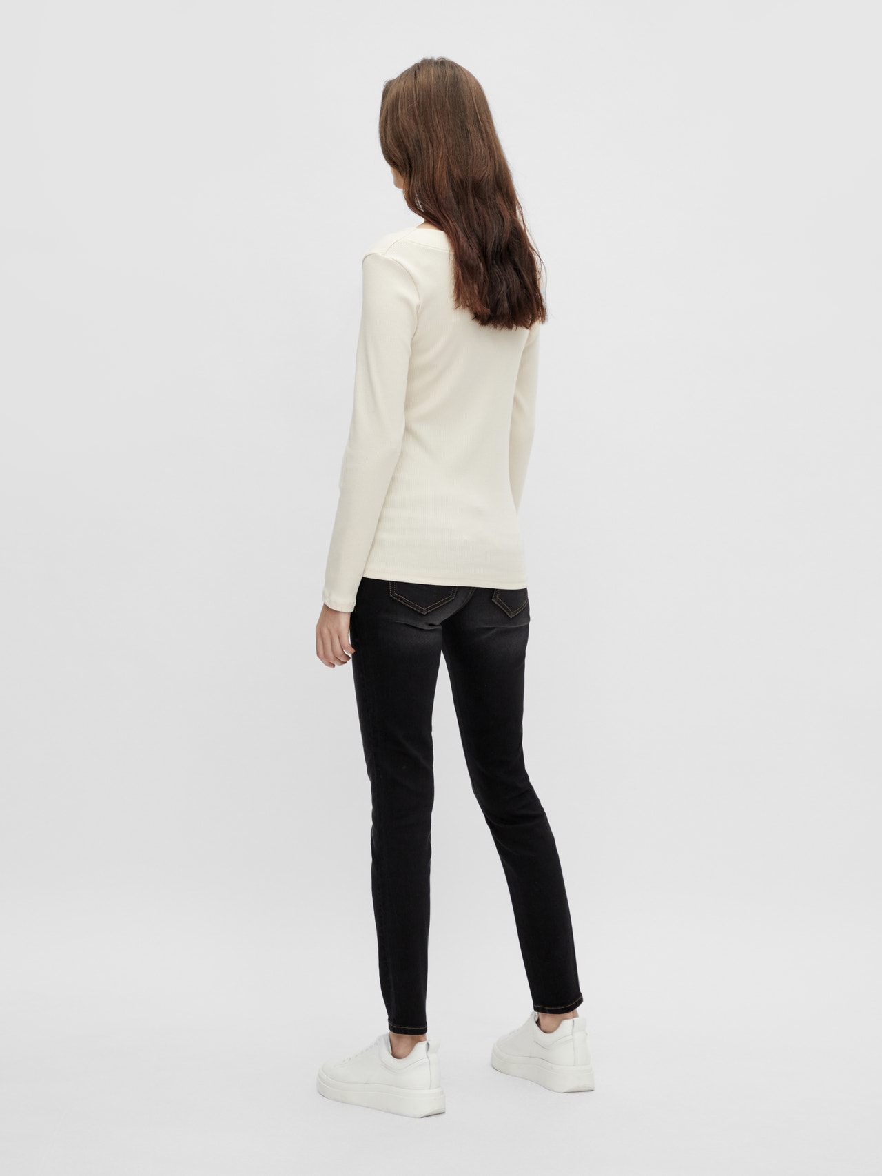 LADIES MATERNITY SLIM FIT JEANS WITH BUMP BAND ATTACHED TO BOTTOM OF WAISTBAND WITH ADJUSTABLE ELASTIC AND BUTTON INSIDE. WAISTBAND WITH BELT LOOPS. BUTTON CF- ABLE TO OPEN. FAKE FLY. FIVE POCKETS WITH RIVETS.