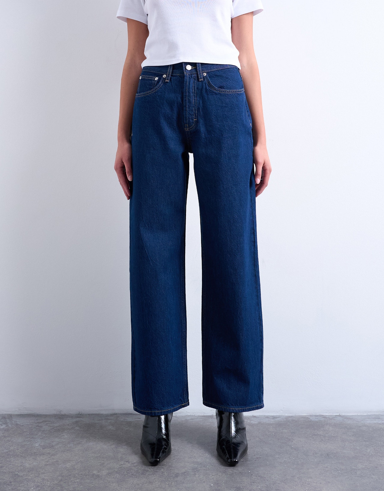 Wide fit jeans are a wardrobe essential. With their relaxed fit, they bring a laid-back, effortlessly cool edge to any outfit. Pair them with a crisp Oxford shirt, a basic white tee, or a cute blazer — anything goes with these jeans. - Product Type : Wide-fit jeans - Closing : Button and zip fastening - Pockets : Back pockets, Coin pocket, Front pockets - Waist : Mid rise - Fit : Regular Fit