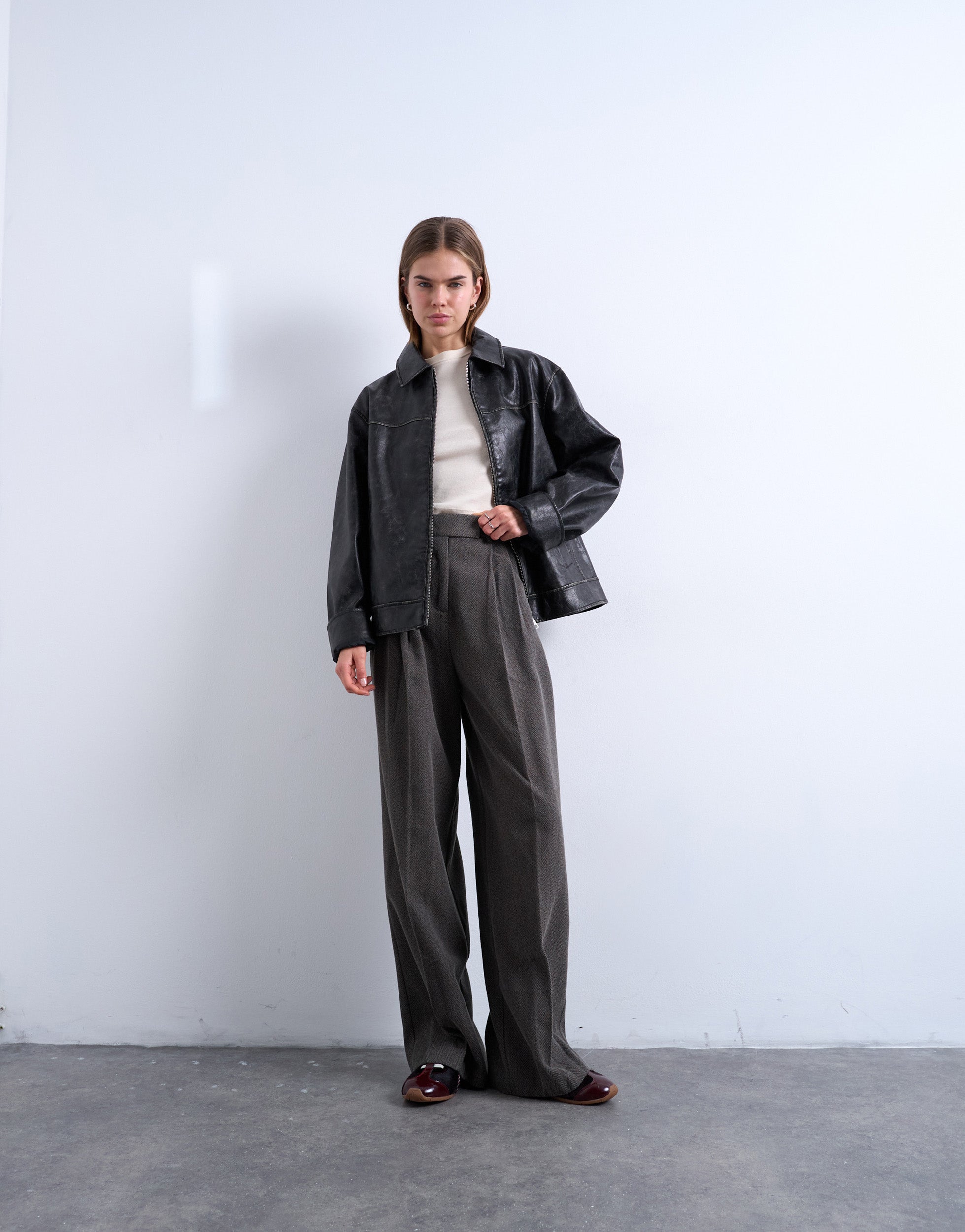 Step up your style with trousers that do it all. From crisp tailoring to soft, wide fits, TOPSHOP has a pair for every vibe. Keep it polished with a shirt and matching blazer, or dress them down with a basic tee and a sleek leather jacket. However you wear them, trousers are the ultimate wardrobe essential.