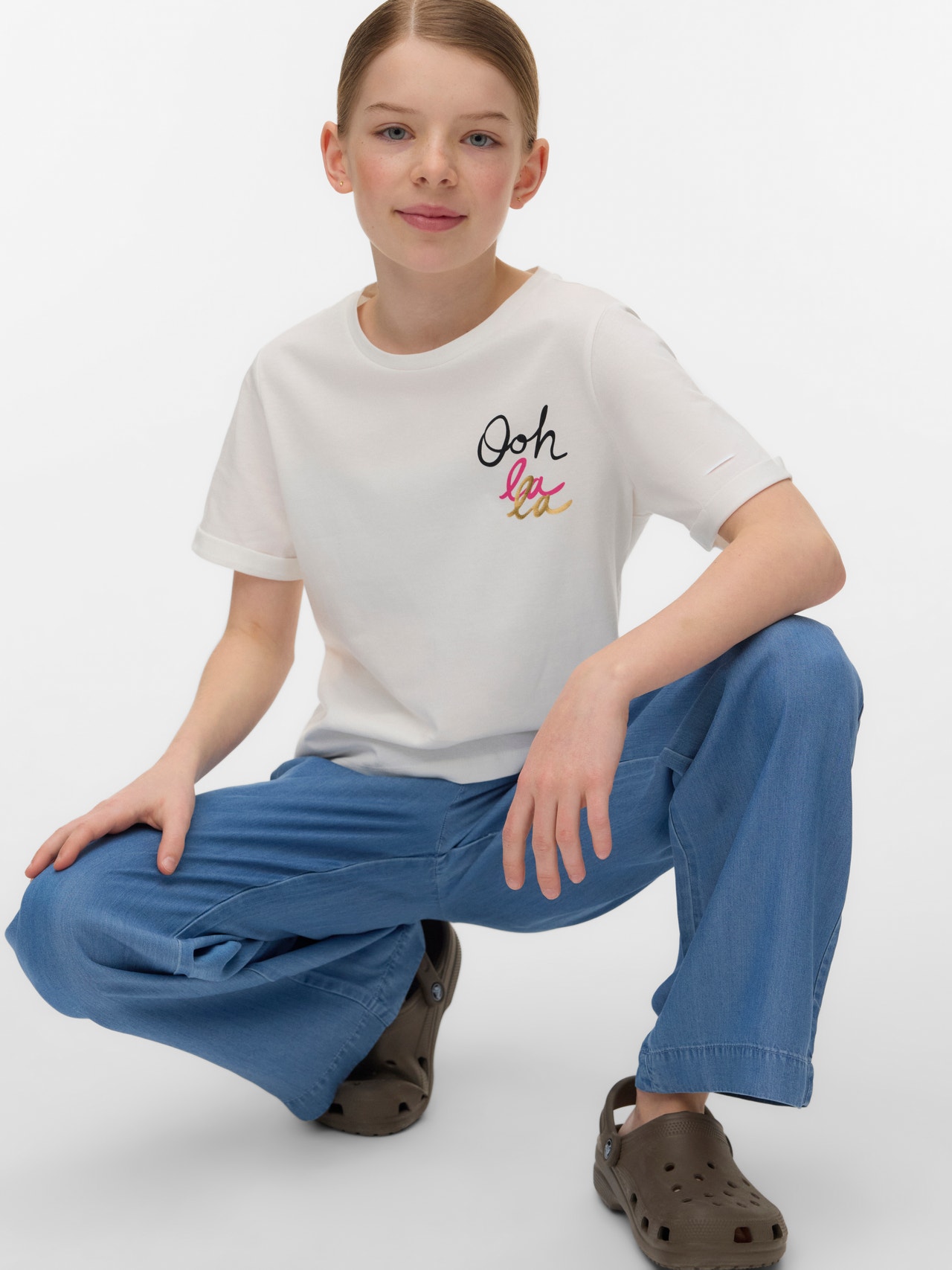 When in doubt, wear a T-shirt! You can never go wrong with a T-shirt - a perfect choice for a cool and timeless look. Wear this T-shirt with nice boyfriend jeans and add a pair of chunky sneakers for an urban city look.