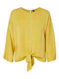 LDS. WOVEN 3/4 TOP WITH A TIE DETAIL AT THE FRONT