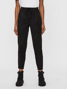 Faux suede trousers with normal waist and slit pockets. The trousers have drawstrings and elastic at the waist. Style them with chunky boots for a super cool look.