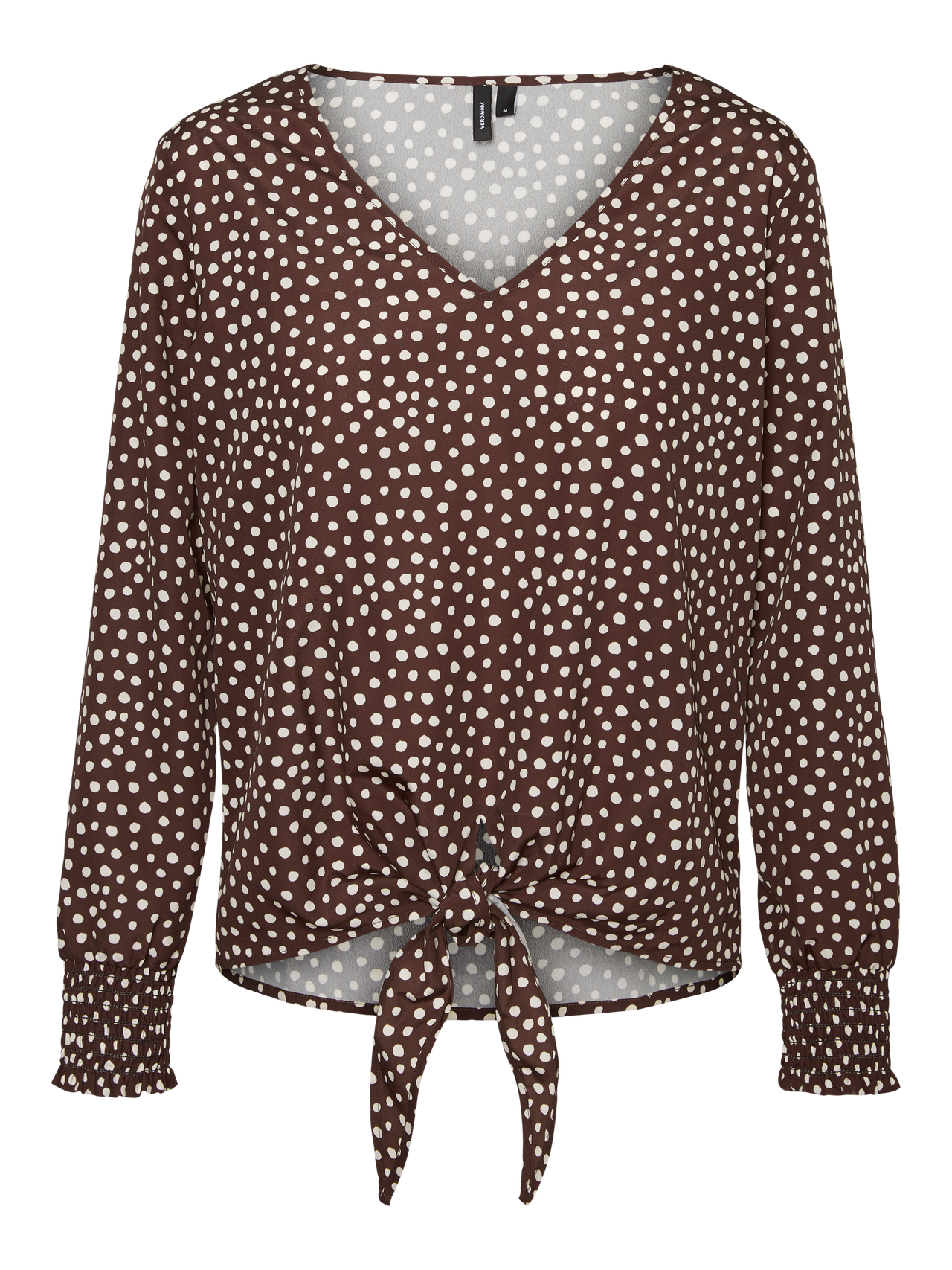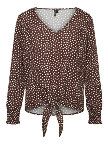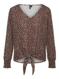 LDS. WOVEN L/S TOP WITH V-NECKLINE AND KNOT AT THE BOTTOM EDGE.
